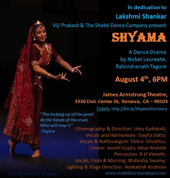 34. "Chandalika," a production of Mythili Prakash, Michael J. Fox Theatre, Vancouver, Canada, Presented by Metro-Vancouver Coordination Committee celebrating 150th birth anniversary of Tagore